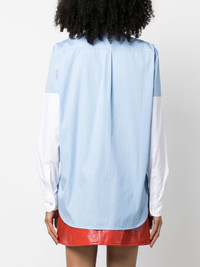 long-sleeve cotton shirt Highlights - Blue/white - Cotton - Spread collar - Contrast stitching - Chest patch pocket - Front button fastening - Enamel buttons - Long sleeves - Buttoned-cuff sleeves - Curved hem Made in Italy Composition Cotton 100% SIZE & FIT Model measurements Height 5 ft 10 in(1.78 m) Bust/Chest 33.07 in(84 cm) Hips 36.61 in(93 cm) Waist 24.8 in(63 cm) FittingInformation Designed to be unstructured, offering a loose fit throughout Made from a midweight non-stretch fabric This piece fits true to size – take your usual size Washing instructions Hand Wash