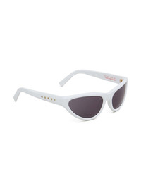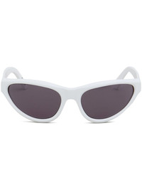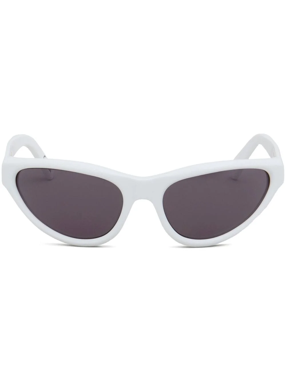 Mavericks cat-eye frame sunglasses Highlights - White - Acetate - Logo print at the arm - Cat-eye frame - Grey tinted lenses - Straight arms - Curved tips - These glasses come with a protective case. Made in Italy Composition Acetate 65%, Nylon 20%, Metal (Other) 15% SIZE & FIT Measurement Arm Length 5.31 in(13.5 cm) Bridge Width 0.74 in(1.9 cm) Lens Diameter 2.36 in(6 cm)