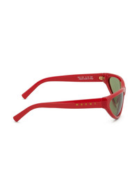 Mavericks logo-print sunglasses Highlights - Cardinal red - Acetate - Cat-eye frame - Green tinted lenses - Logo print at the arm - Straight arms - Curved tips - These glasses come with a protective case. Made in Italy Composition Acetate 65%, Nylon 20%, Metal (Other) 15%