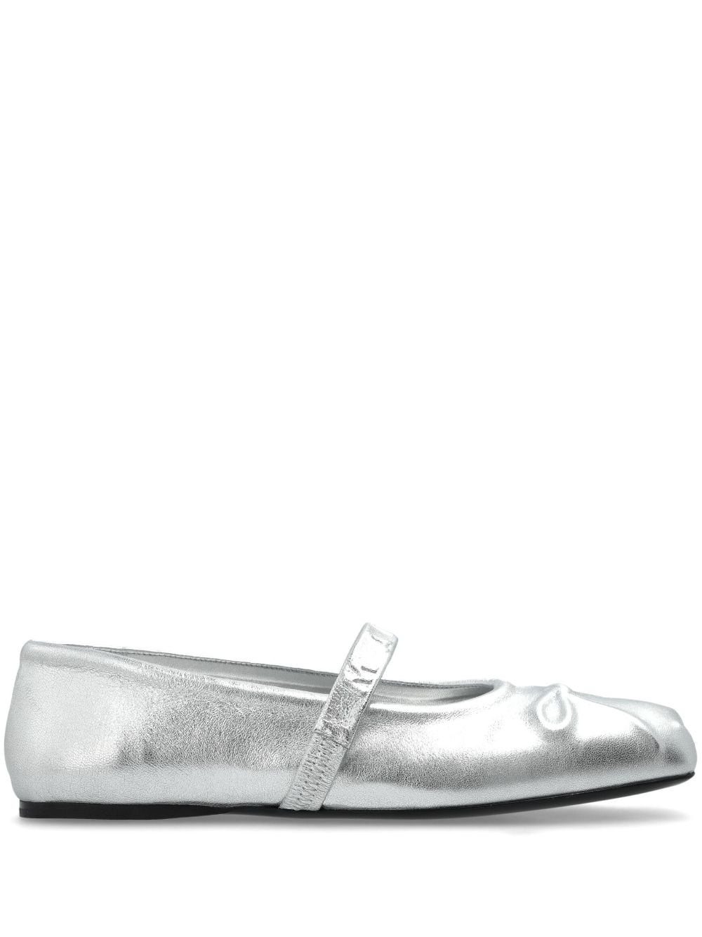 metallic ballerina shoes Highlights - Silver-tone - Rubber sole - Embossed logo to the front - Bow detailing Made in Italy Composition Outer: Lamb Skin 100% Lining: Calf Leather 100% Sole: Rubber 100%
