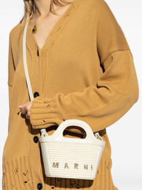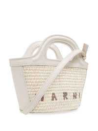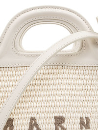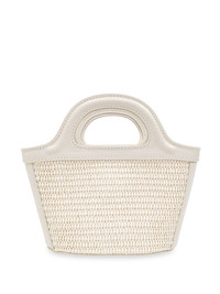 micro Tropicalia logo-embroidered tote bag Highlights - White/beige/brown - Interwoven design - Leather trim - Gold-tone hardware - Embroidered logo to the front - Internal logo patch - Open top - Two flat top handles - Adjustable detachable shoulder strap - Main compartment - Full lining - This piece comes complete with a protective dust bag. Made in Italy Composition Outer: Cotton 100%, Polyamide 100%, Calf Leather 100% Lining: Cotton 95%, Acrylic 5% SIZE & FIT Measurement HEIGHT 5.51 in(14 cm) WIDTH 7.87 in(20 cm)