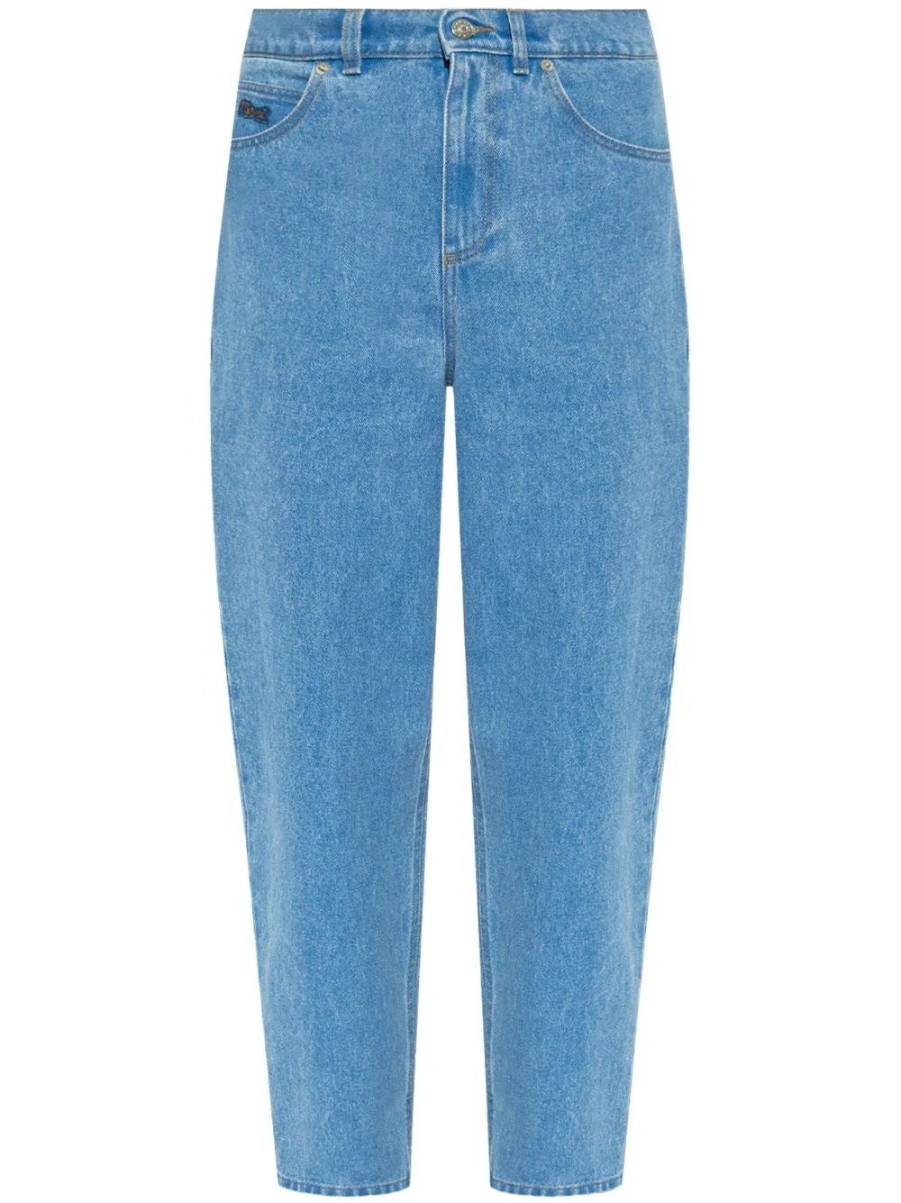 mid-rise tapered-leg jeans Highlights - Blue - Cotton - Denim - Applique logo - Logo patch to the rear - Belt loops - Concealed fly and button fastening - Classic five pockets - Tapered leg Made in Italy Composition Cotton 100%