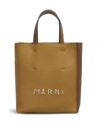 mini Museo tote bag Highlights - Ochre brown - Calf leather - Two flat top handles - Adjustable detachable shoulder strap - Embroidered logo to the front - Open top - Main compartment - Internal zip-fastening pocket Made in Italy Composition Outer: Polyester 100%, Calf Leather 100%, Brass 100%, Zamak 100% Lining: Calf Leather 100%, Cotton 95%, Acrylic 5%