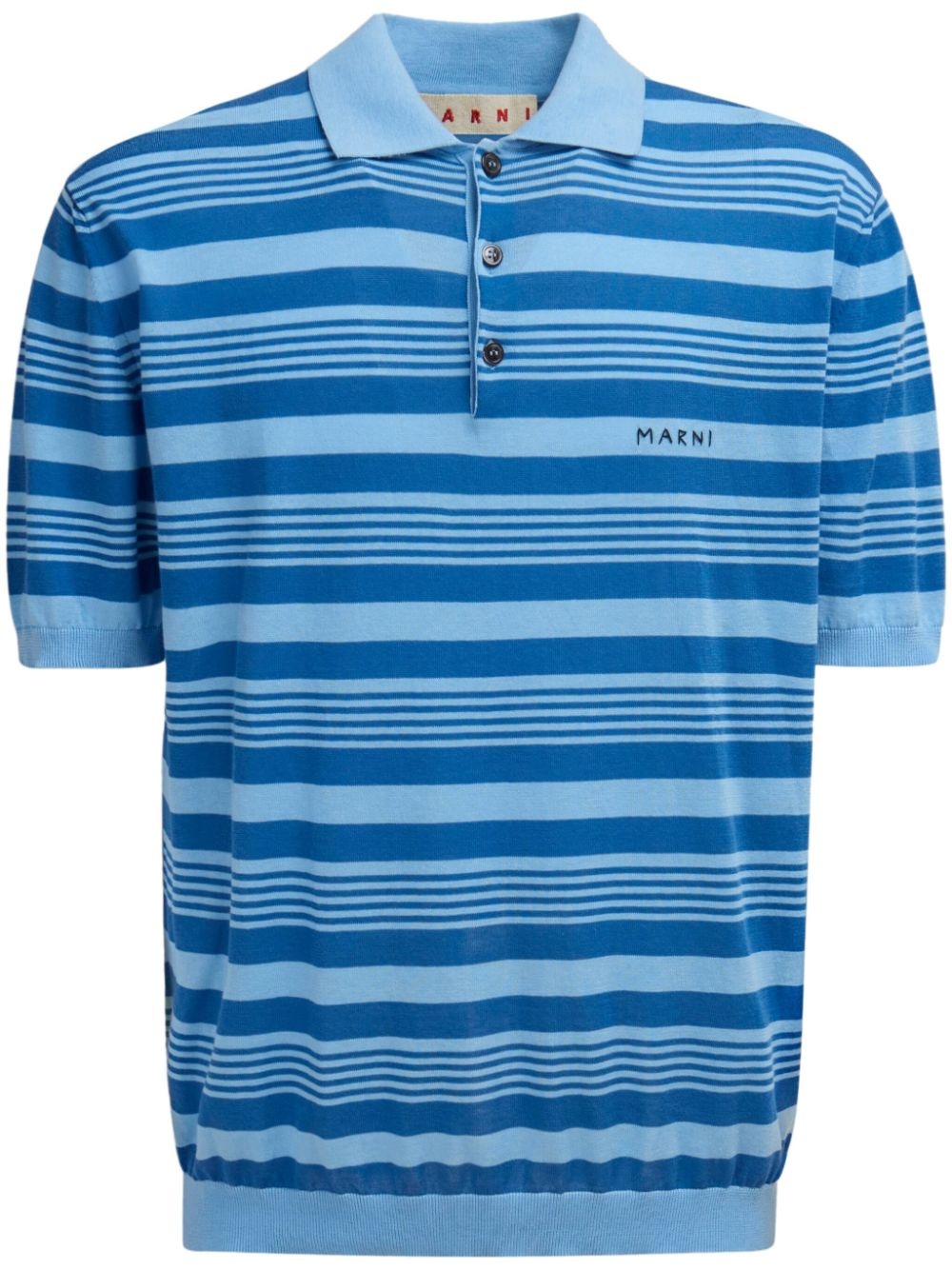 BLUE STRIPED COTTON POLO SHIRT WITH MARNI MENDING