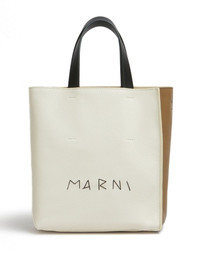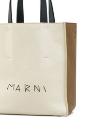 Museo mending-logo leather tote bag Highlights - Cream white/brown/black - Calf leather - Grained texture - Colour-block panelled design - Embroidered logo to the front - Open top - Adjustable detachable shoulder strap - Two flat top handles - Internal zip-fastening pocket - Twill lining Made in Italy Composition Outer: Calf Leather 100%
