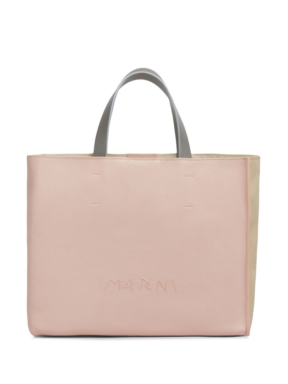 LIGHT PINK AND BEIGE LEATHER MUSEO SOFT TOTE BAG WITH MARNI SYMBOL EMBROIDERY