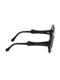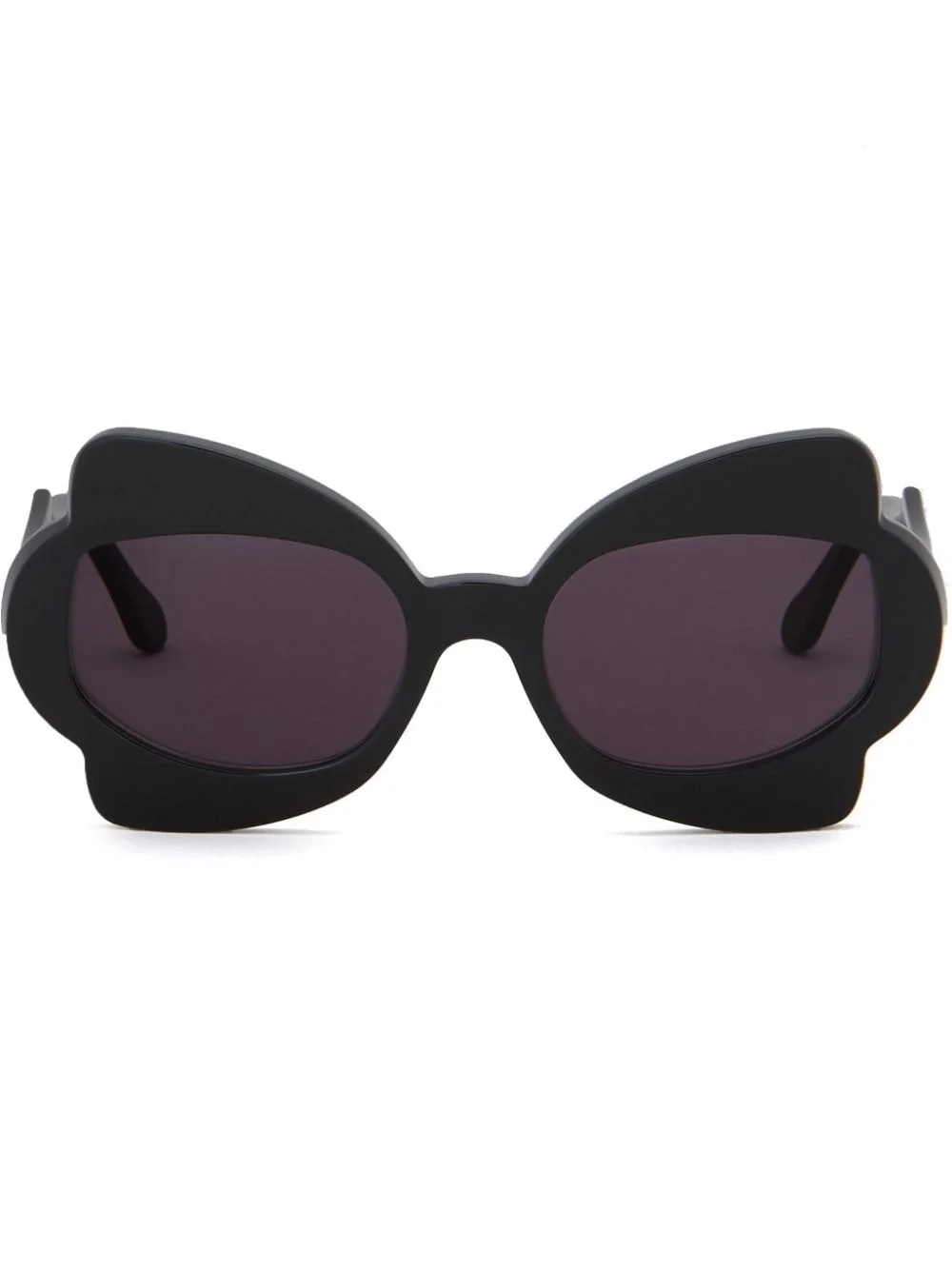 oversized-frame sunglasses Highlights - Black - Acetate - Oversize frame - Scallop edge - Purple tinted lenses - Uv-protective lenses - Logo print at the arm - Straight arms - Curved tips - These glasses come with a protective case. Made in Italy Composition Acetate 65%, Nylon 20%, Metal (Other) 15%