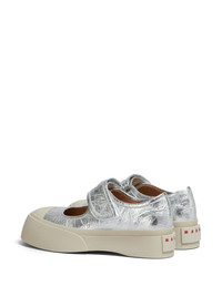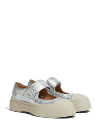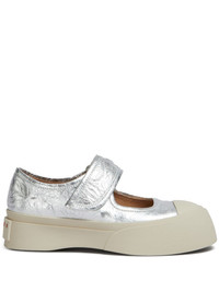 Pablo pumps Crafted in Italy from calf leather, this Mary Jane iteration of Marni's Pablo silhouette is elevated with a crinkled metallic finish for added texture and dimension. They fasten at the front with a practical touch-strap. Highlights - Silver-tone - Calf leather - Metallic finish - Crinkled finish - Front touch-strap fastening - Round toe - Rubber toecap - Branded leather insole - Flatform sole Made in Italy Composition Leather 100%