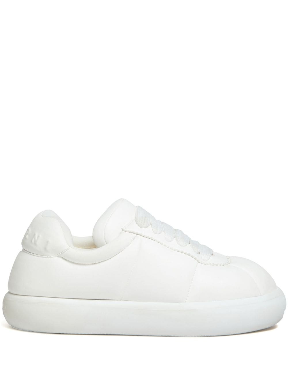 BigFoot 2.0 padded leather sneakers Marni's playful aesthetic is reflected in the rounded silhouette of these white sneakers, padded for a signature creative and statement feel. Highlights - White - Leather - Padded design - Front lace-up fastening - Round toe - Flat rubber sole Made in Italy Composition Leather 100% SIZE & FIT Measurement HEEL 1.57 in(4 cm) Sole height 0.98 in(2.5 cm)