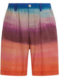 painterly-print pleated cotton shorts