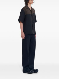 panelled shirt Highlights - Black/brown - Virgin wool - Crepe texture - Panelled design - Notched collar - Front button fastening - Short sleeves - Straight hem Made in Italy Composition Virgin Wool 100% Washing instructions Read Manufacturer Guidelines