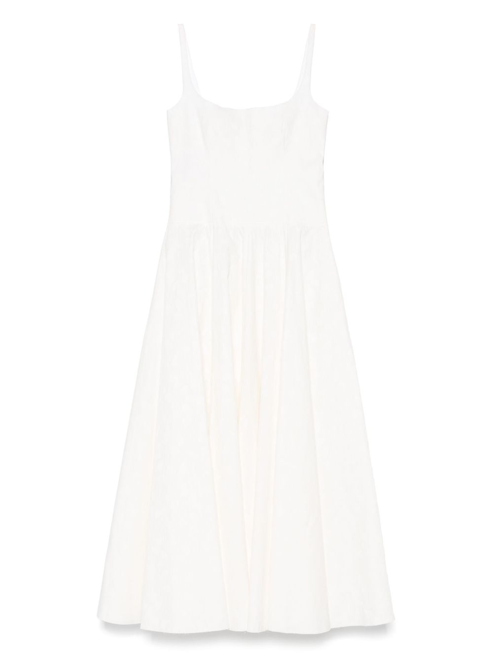patterned-jacquard cotton midi dress Highlights - White - Concealed side zip fastening - Square neck - Sleeveless - Flared Made in Italy Composition Cotton 100% SIZE & FIT Model measurements Height 5 ft 9 in(1.75 m) Bust/Chest 31.88 in(81 cm) Hips 34.64 in(88 cm) Waist 24.01 in(61 cm) FittingInformation Designed for a close fit at the chest and waist with a loose fit at the hip Made from a midweight non-stretch fabric