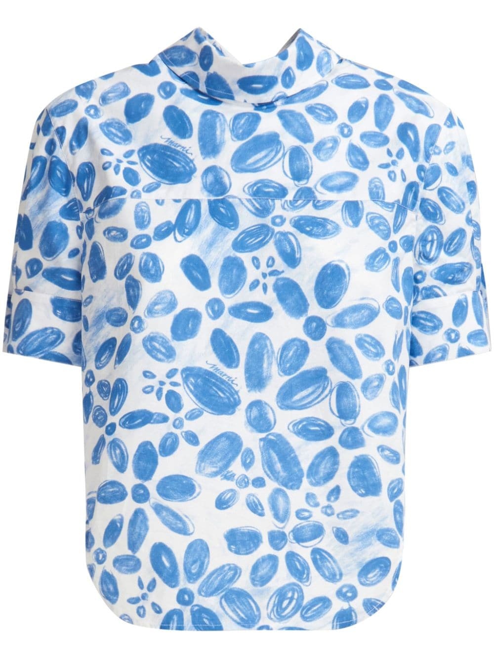 patterned short-sleeve shirt Highlights - White/blue - Cotton - Round neck - Abstract pattern print - Short sleeves - Curved hem Made in Italy Composition Cotton 100%