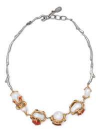 GOLD AND PALLADIUM BRANCH NECKLACE WITH ENCASED PEARL CHARMS