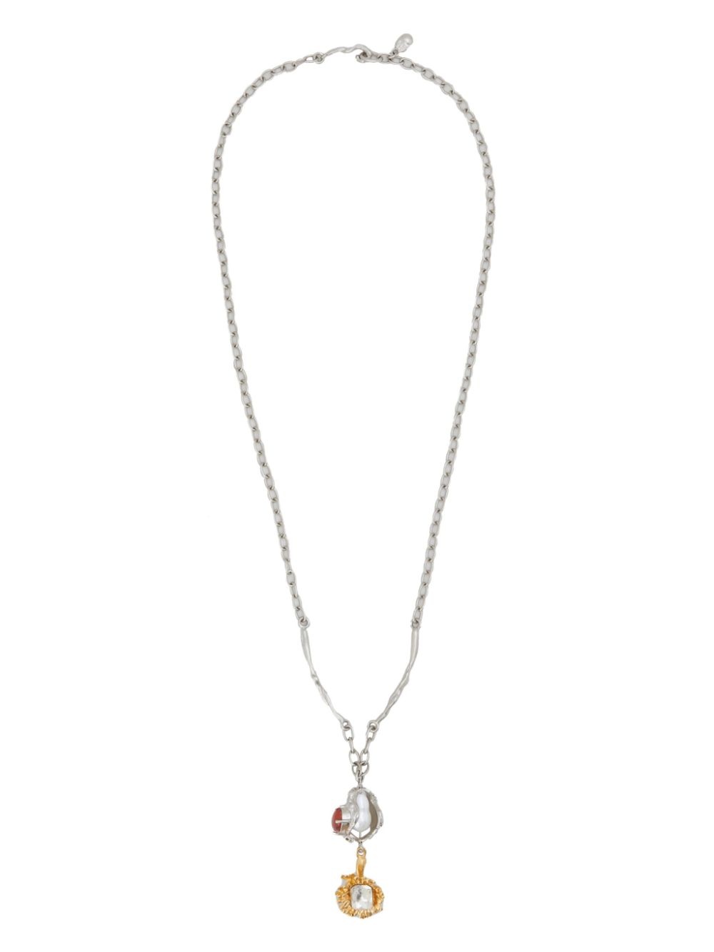 pendant chain necklace Highlights - Silver-tone/multicolour - Brass/zirconium - Pearl detailing - Cable-link chain Made in Italy