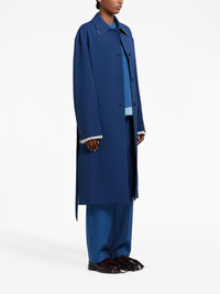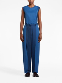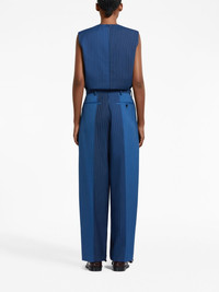 pinstriped straight-leg trousers Highlights - Indigo blue/sky blue - Virgin wool - Colour-block design - Pinstripe pattern - Straight leg - Mid-rise - Belt loops - Off-centre front fastening - Two side inset pockets - Two rear button-fastening jetted pockets Made in Italy Composition Virgin Wool 100%