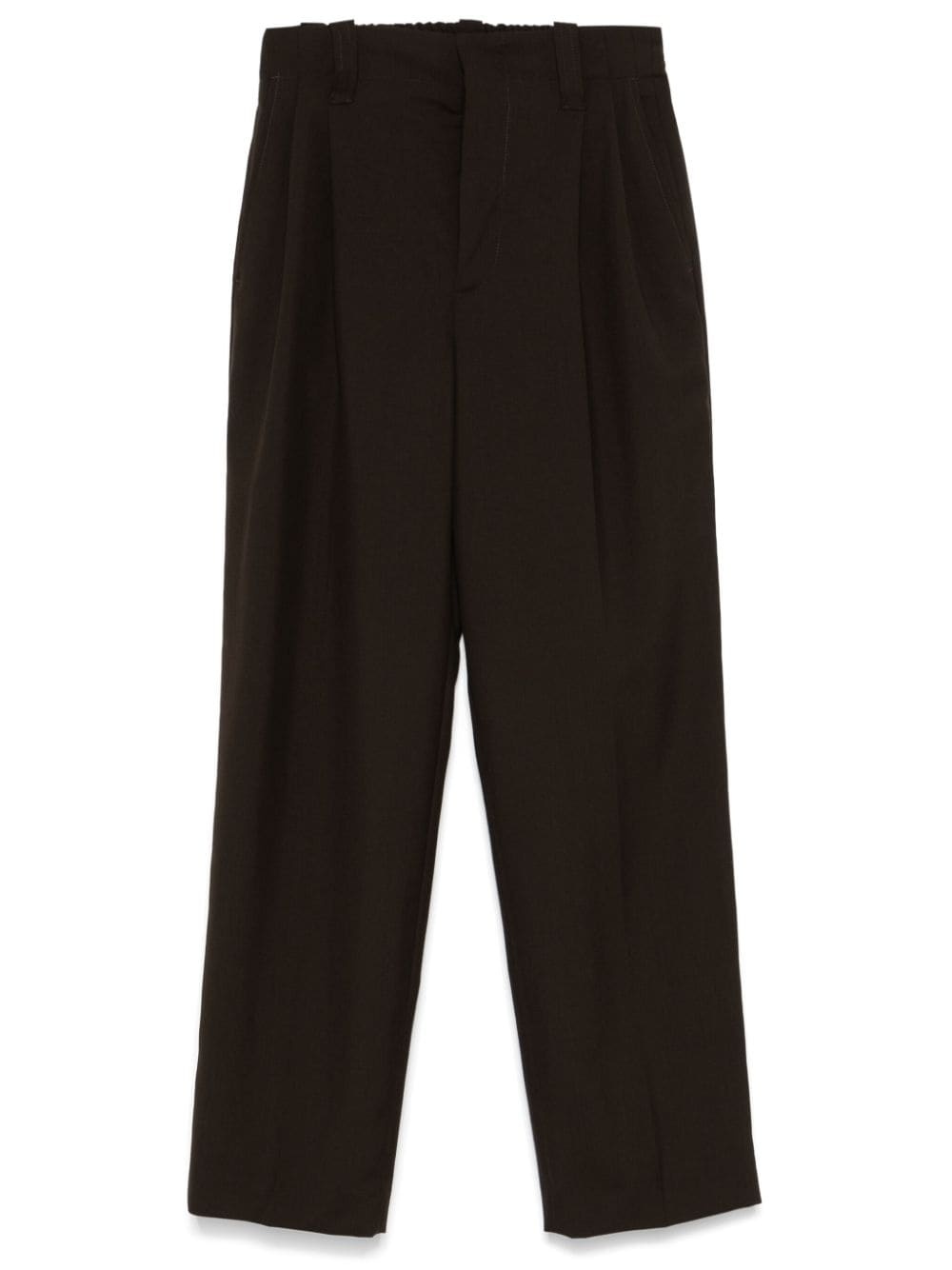 pleat-detail trousers Highlights - Chocolate brown - Virgin wool - Pleat detailing - Concealed front hook and zip fastening - Belt loops - Rear elasticated waistband - Two diagonal pockets to the sides - Pressed crease - Rear flap pocket - Rear button-fastening jetted pocket - Tapered leg Made In Italy Composition Lining: Viscose 100%, Cotton 100% Outer: Virgin Wool 100% SIZE & FIT Model measurements Height 5 ft 9 in(1.76 m) Bust/Chest 32.28 in(82 cm) Hips 35.43 in(90 cm) Waist 25.19 in(64 cm) FittingInformation Designed for a straight-leg fit, these trousers allow for a close fit at the waist and an unrestricted, comfortable fit over the leg The partially elasticated waistband offers increased movement and comfort at the waist Made from a midweight non-stretch fabric