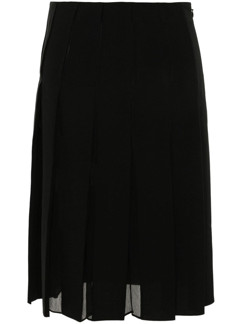 pleated midi skirt Highlights - Black - Fully pleated - Chiffon - Straight hem - Above-knee length - Unlined - Concealed side zip fastening Made in Italy Composition Silk 100%, Polyester 53%, Virgin Wool 43%, Spandex/Elastane 4% SIZE & FIT Model measurements Height 5 ft 10 in(1.78 m) Bust/Chest 32.67 in(83 cm) Hips 35.43 in(90 cm) Waist 23.22 in(59 cm) FittingInformation This midi-length skirt is intended to be worn high on the waist Made from a midweight fabric This piece fits true to size – take your usual size