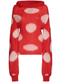 RED MOHAIR BOAT-NECK JUMPER WITH POLKA DOTS