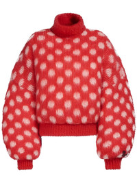 polka-dot intarsia jumper Highlights - Brick red - Knitted construction - Patterned intarsia knit - High neck - Balloon sleeves - Ribbed cuffs and hem Made in Italy Composition Acetate 38%, Polyamide 32%, Mohair 30% SIZE & FIT Measurement CHEST 59.84 in(152 cm) SLEEVE LENGTH 39.37 in(100 cm) Washing instructions Read Manufacturer Guidelines