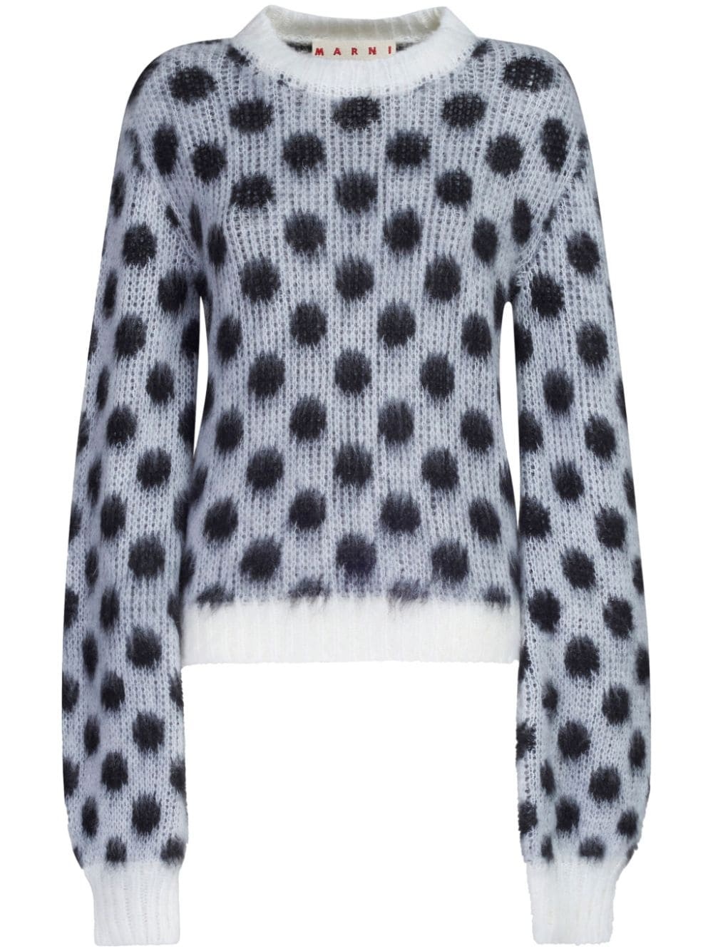 WHITE MOHAIR JUMPER WITH POLKA DOTS