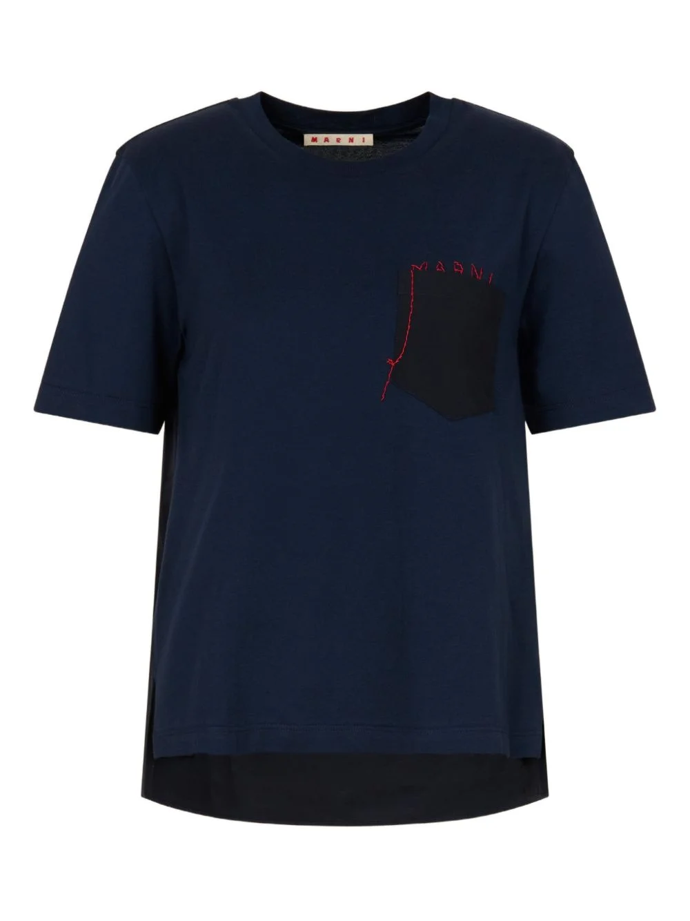 DEEP BLUE COTTON T-SHIRT WITH HANDSTITCHED MARNI LOGO
