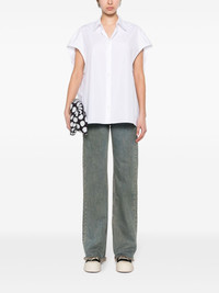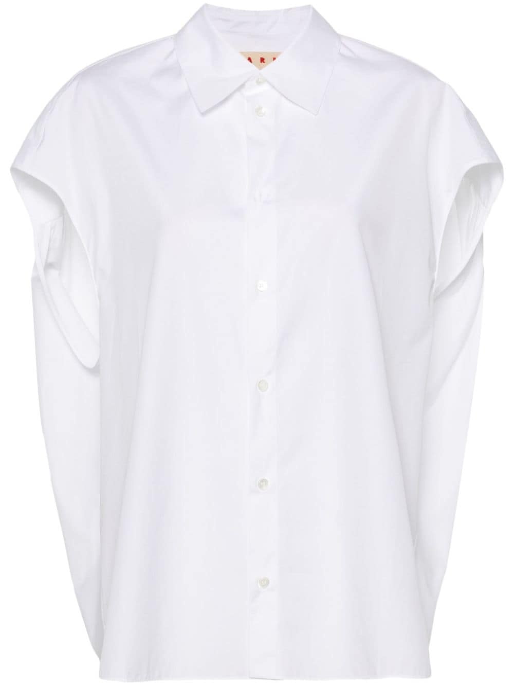 poplin sleeveless shirt Highlights - Off-white - Cotton - Poplin texture - Pointed collar - Sleeveless - Ruched detailing - Front button fastening - Internal logo tag - Straight hem - Front button fastening Made in Italy Composition Cotton 100% SIZE & FIT Model measurements Height 5 ft 11 in(1.8 m) Bust/Chest 33.07 in(84 cm) Hips 37 in(94 cm) Waist 25.59 in(65 cm) Measurement LENGTH 22.44 in(57 cm) WAIST 43.3 in(110 cm) BUST 44.88 in(114 cm) Shoulder Width 19.68 in(50 cm) FittingInformation Designed to be unstructured, offering a loose fit throughout Made from a midweight non-stretch fabric This piece fits true to size – take your usual size Washing instructions Machine Wash
