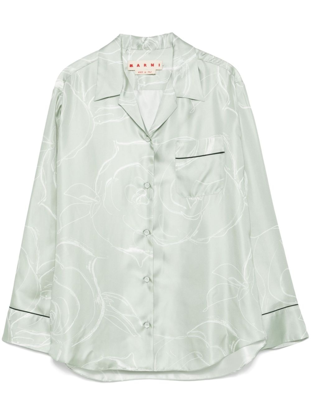 printed silk shirt Highlights - Mint green - Front button fastening - Chest patch pocket - Camp collar - Long sleeves Made in Italy Composition Silk 100% SIZE & FIT Model measurements Height 5 ft 10 in(1.77 m) Bust/Chest 32.28 in(82 cm) Hips 35.03 in(89 cm) Waist 25.19 in(64 cm) FittingInformation Designed to be unstructured, offering a loose fit throughout Made from a lightweight non-stretch fabric