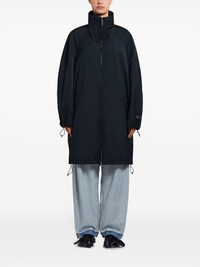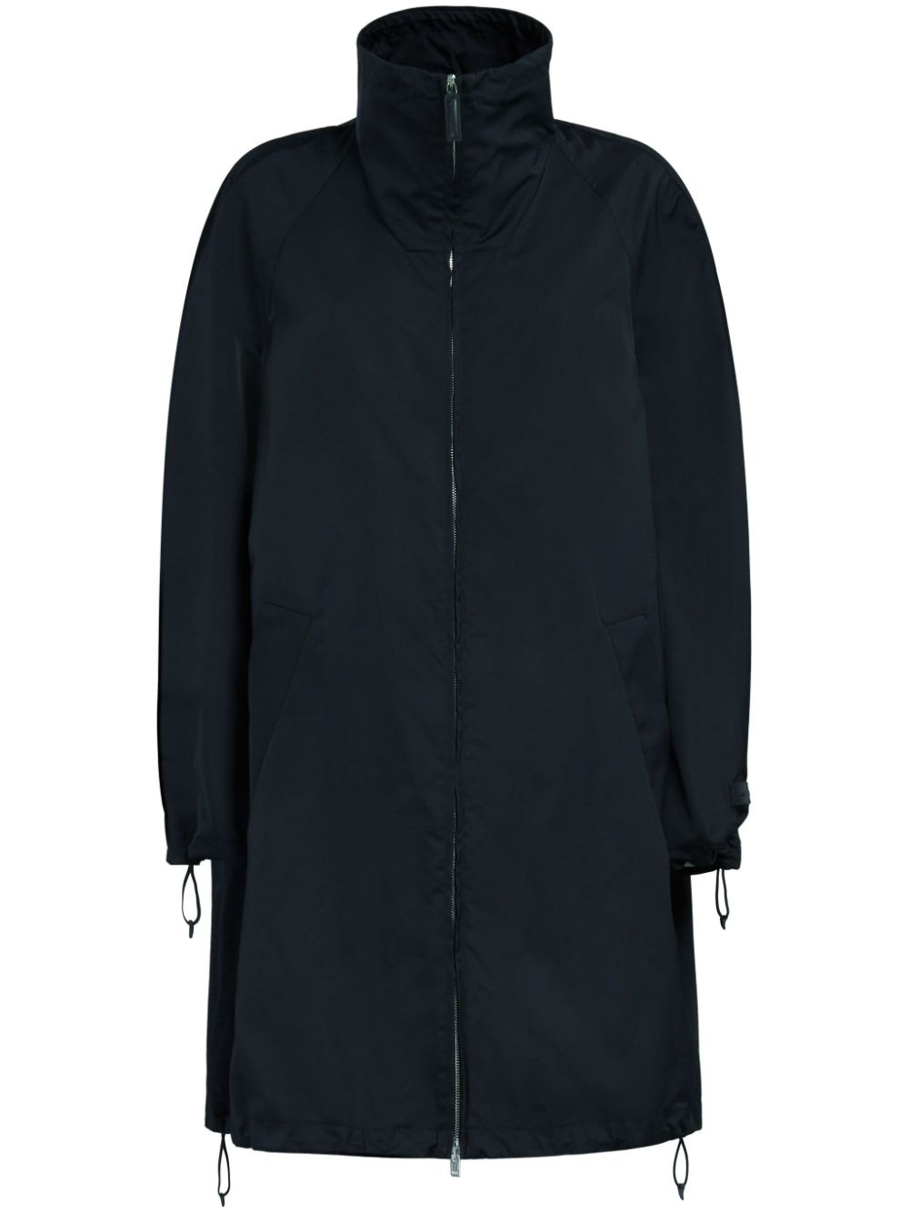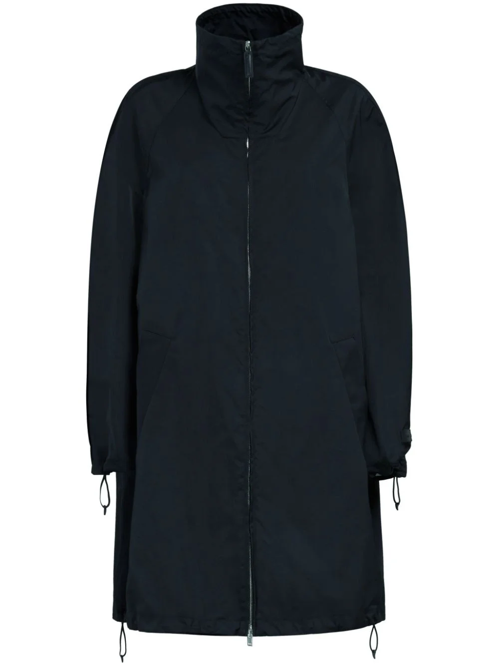 raglan-sleeve zip-up coat Highlights - Black - Logo patch at the sleeve - High neck - Front two-way zip fastening - Two side welt pockets - Long raglan sleeves - Drawstring cuffs - Drawstring hem Made in Italy Composition Polyester 66%, Cotton 34%