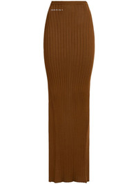 logo-jacquard ribbed skirt Highlights - Camel brown - Recycled viscose blend - Ribbed knit - Intarsia-knit logo - Elasticated waistband - Pull-on style - Rear slit - Floor-length - Straight hem Made in Italy Composition Recycled Viscose 92%, Polyamide 7%, Elastane 1%