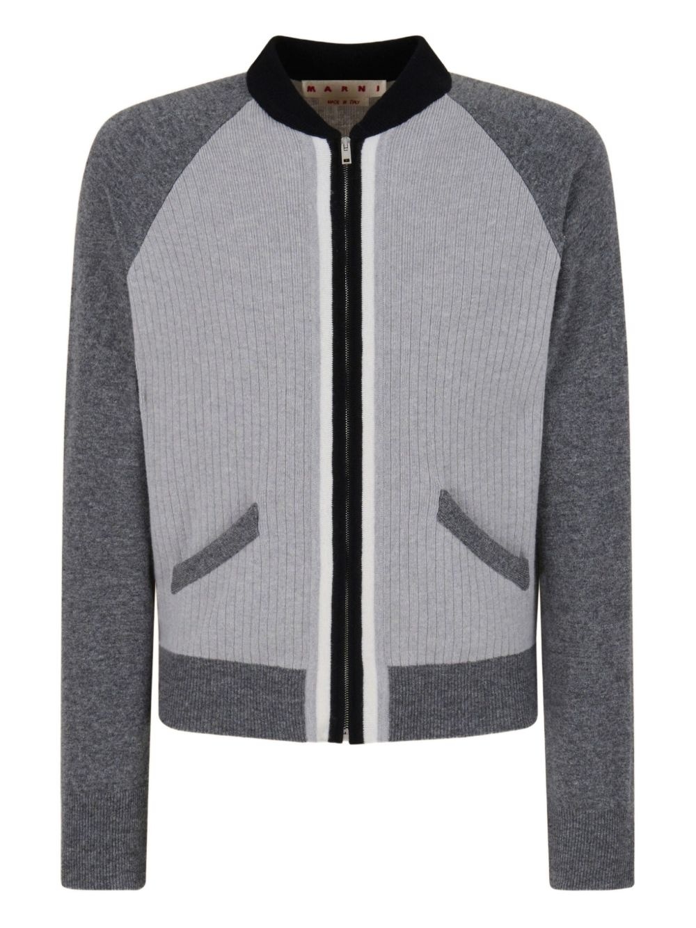 ribbed-panel zip-up sweatshirt Highlights - Grey - Contrasting ribbed panels - Zip fastening - Notched collar - Front pockets - Long sleeves Made in Italy Composition Virgin Wool 100% Washing instructions Read Manufacturer Guidelines