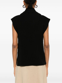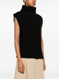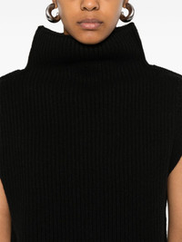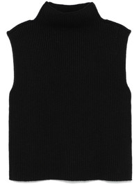 ribbed wool vest Highlights - Black - Virgin wool - Ribbed knit - High neck - Inside-out effect seams - Decorative stitching to the shoulder - Sleeveless - Side slits - Straight hem Made in Italy Composition Virgin Wool 100% SIZE & FIT Model measurements Height 5 ft 10 in(1.77 m) Bust/Chest 33.07 in(84 cm) Hips 37 in(94 cm) Waist 24.8 in(63 cm) FittingInformation Designed for a relaxed fit, this piece allows for comfort and movement when worn Made with a midweight knit, this piece offers some stretch