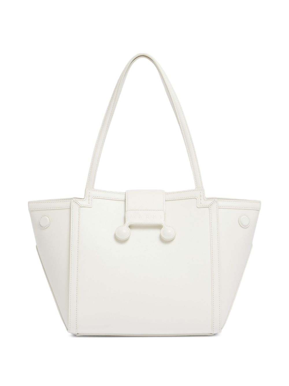 Riviera structured tote bag Highlights - White - Dual top handles - Foldover top - Concealed magnetic fastening - Flat button details - Folded panels - Internal compartment Made in Italy Composition Lining: Lamb Skin 100% Outer: Calf Leather 100%