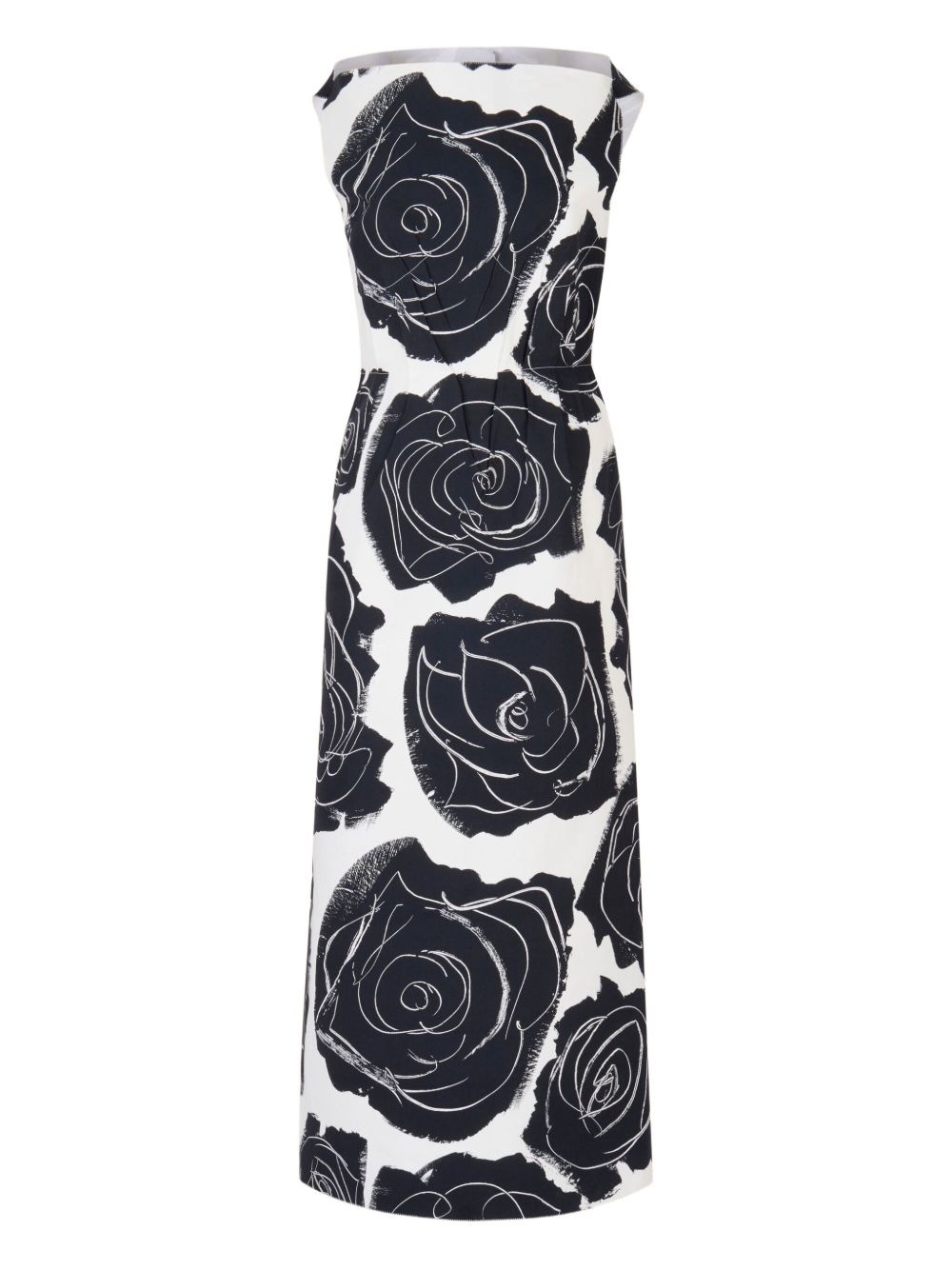 rose-print midi dress Highlights - White - Floral design - Black rose motifs - Sleeveless - Slash neck - Cinched waistline - Flowing skirt Made in Italy Composition Cotton 100%
