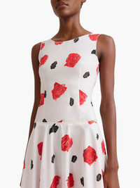 rose-print midi dress Highlights - White - Rear zip fastening - Floral design - Red roses - Black accents - Sleeveless - Flared silhouette - Fitted bodice - Round neckline - Concealed side pockets Made in Italy Composition Cotton 100%