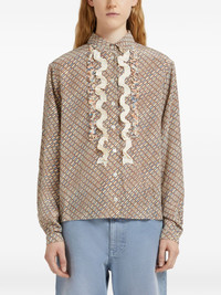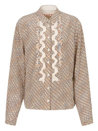 ruffled printed shirt Highlights - Light brown - Silk - Crepe de chine - All-over print - Ruffle detailing - Button closure - Long sleeves Made in Italy Composition Silk 100% Washing instructions Read Manufacturer Guidelines