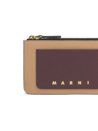 PINK LIGHT BROWN AND DARK BROWN LEATHER ZIP CARDHOLDER