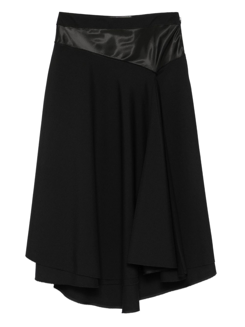 satin-panel midi skirt Highlights - Black - Satin panel - Flared hem - Asymmetric design - Straight waistband Made in Italy Composition Viscose 100%, Virgin Wool 100% SIZE & FIT Model measurements Height 5 ft 9 in(1.75 m) Bust/Chest 34.64 in(88 cm) Hips 36.61 in(93 cm) Waist 26.37 in(67 cm) Measurement LENGTH 33.07 in(84 cm) WAIST 26.77 in(68 cm) Washing instructions Dry Clean Only