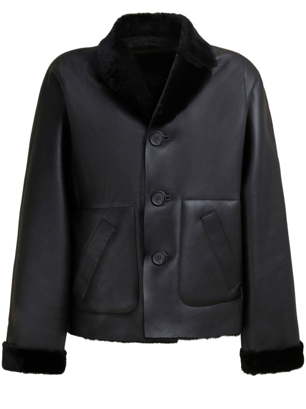 reversible shearling jacket Highlights - Black - Nappa leather - Shearling trim - Smooth grain - Shearling collar - Front button fastening - Long sleeves - Two side welt pockets - Straight hem Made in Italy Composition Leather 100%