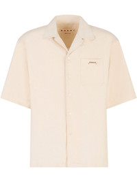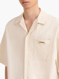 short-sleeve button-up shirt Highlights - Cream beige - Front button closure - Camp collar - Loose fit - Patch pocket at chest - Logo embroidery on pocket Made in Italy Composition Cotton 100%