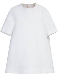 short-sleeve cotton minidress Marni has brought a playful spirit to fashion since its debut in the early nineties. From the SS24 collection, this white cotton dress is defined by its voluminous silhouette and mini length. Highlights - White - Cotton - Round neck - Short sleeves - Voluminous skirt - Straight hem - Rear zip fastening Made in Italy Composition Cotton 100% SIZE & FIT FittingInformation Designed to be unstructured, offering a loose fit throughout Made from a midweight non-stretch fabric This piece fits true to size – take your usual size Washing instructions Read Manufacturer Guidelines