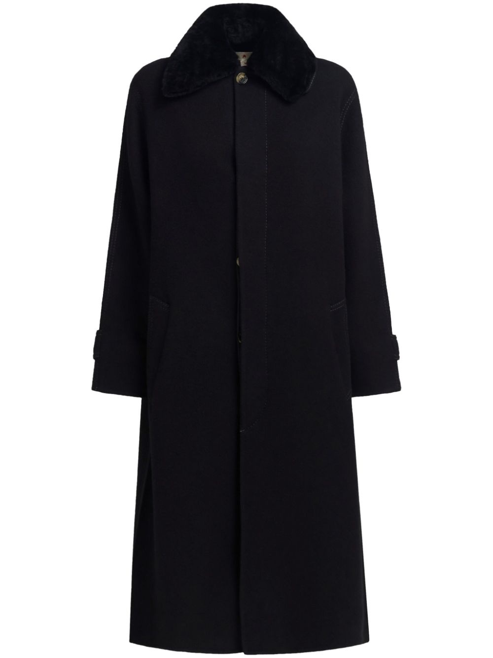single-breasted coat Highlights - Black - Virgin wool-cashmere blend - Faux-fur collar - Concealed front button fastening - Two side welt pockets - Long sleeves - Buttoned cuffs - Straight hem Made in Italy Composition Virgin Wool 90%, Cashmere 10%