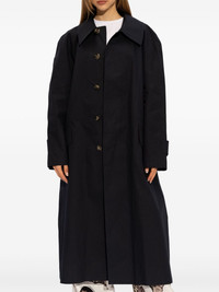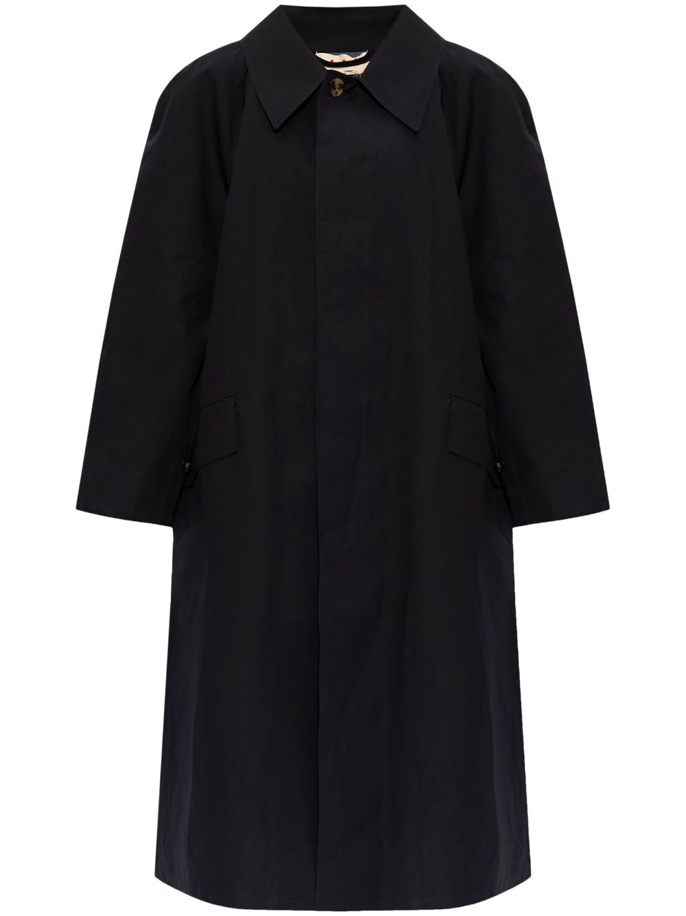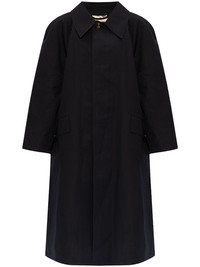 single-breasted cotton coat Highlights - Black - Cotton - Gabardine weave - Embroidered logo at the sleeve - Classic collar - Concealed front button fastening - Long raglan sleeves - Belted cuffs - Two side welt pockets - Straight hem - Calf-length Made in Italy Composition Cotton 100% Washing instructions Read Manufacturer Guidelines