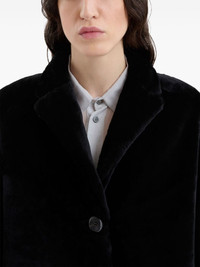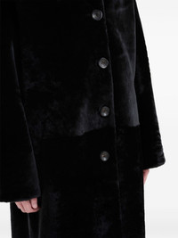 BLACK SHAVED SHEARLING COAT WITH PADDED SHOULDERS