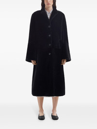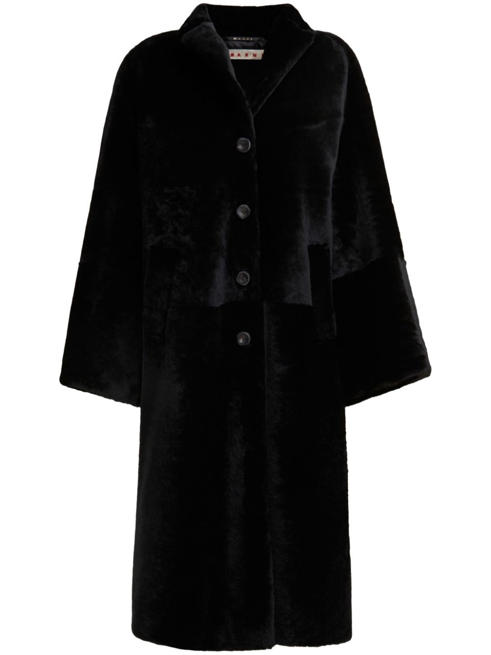 single-breasted faux-fur coat Highlights - Black - Faux-fur design - Brushed effect - Notched lapels - Front button fastening - Long wide sleeves - Two side welt pockets - Mid-calf length - Straight hem Made in Italy Composition Lamb Fur 100% Washing instructions Specialist Cleaning