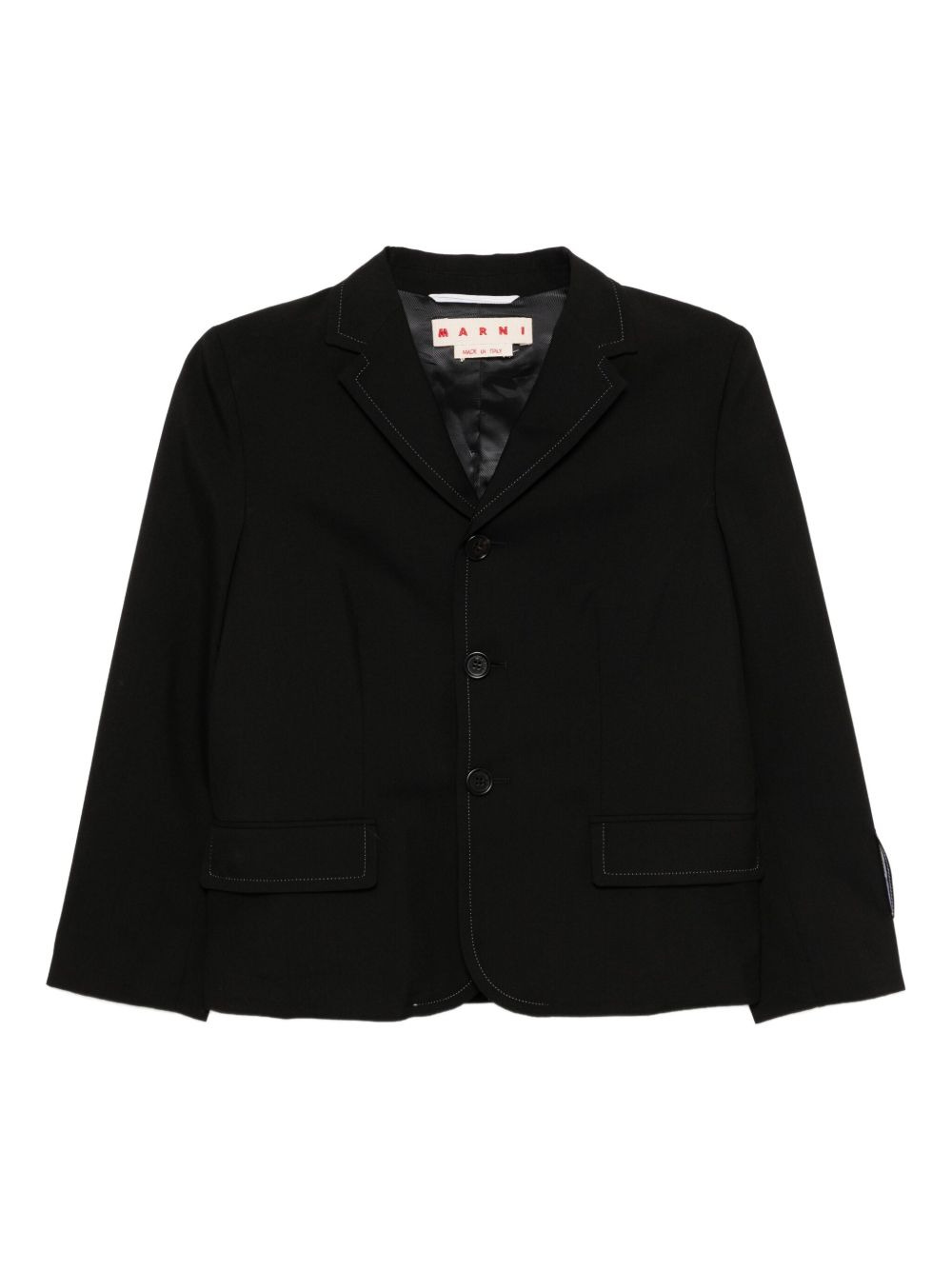 single breasted tailored blazer Highlights - Black - Front button fastening - Notched lapels - Two front flap pockets - Long sleeves Made in Italy Composition Body: Virgin Wool 100% Lining: Viscose 100% SIZE & FIT Model measurements Height 5 ft 10 in(1.77 m) Bust/Chest 30.7 in(78 cm) Hips 35.82 in(91 cm) Waist 21.25 in(54 cm) FittingInformation Designed for a slim fit that sits just away from the body offering a close yet comfortable fit Made from a midweight non-stretch fabric Measurement LENGTH 22.44 in(57 cm) WAIST 35.43 in(90 cm) BUST 37 in(94 cm) Shoulder Width 15.35 in(39 cm)
