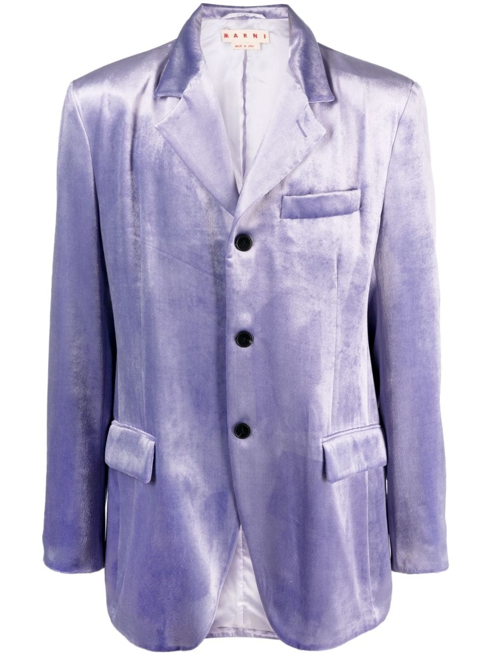 PURPLE SINGLE-BREASTED VELVET BLAZER