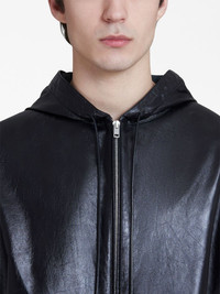 sleeveless leather jacket black lambskin drawstring hood sleeveless front zip fastening two side pouch pockets elasticated hem Made in Italy Composition Lamb Skin 100%