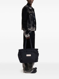 slouchy tote bag Highlights - Black - Padded texture - Logo patch detail - Two top handles - Main compartment Imported Composition Lining: Polyamide 100% Outer: Polyester 100%, Polyurethane 100%, Calf Leather 100%, Brass 100%, Zamak 100%
