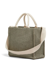 GREEN RAFFIA-EFFECT SMALL TOTE BAG